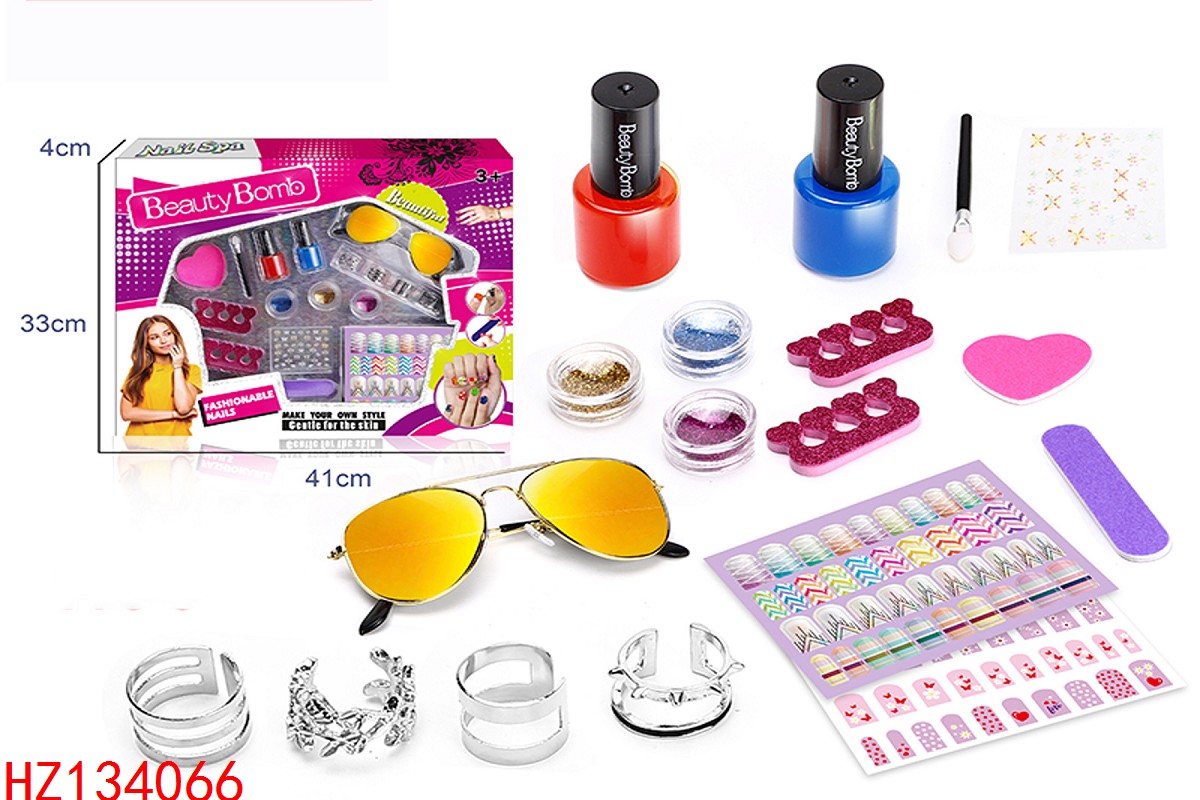 女孩美甲套装配眼镜和戒指