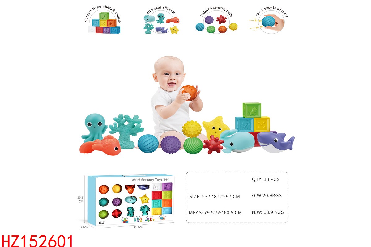 婴儿感知玩具套装(方块浮雕早教积木8个,萌趣海洋小伙伴6个,多纹理感知触摸球6个)