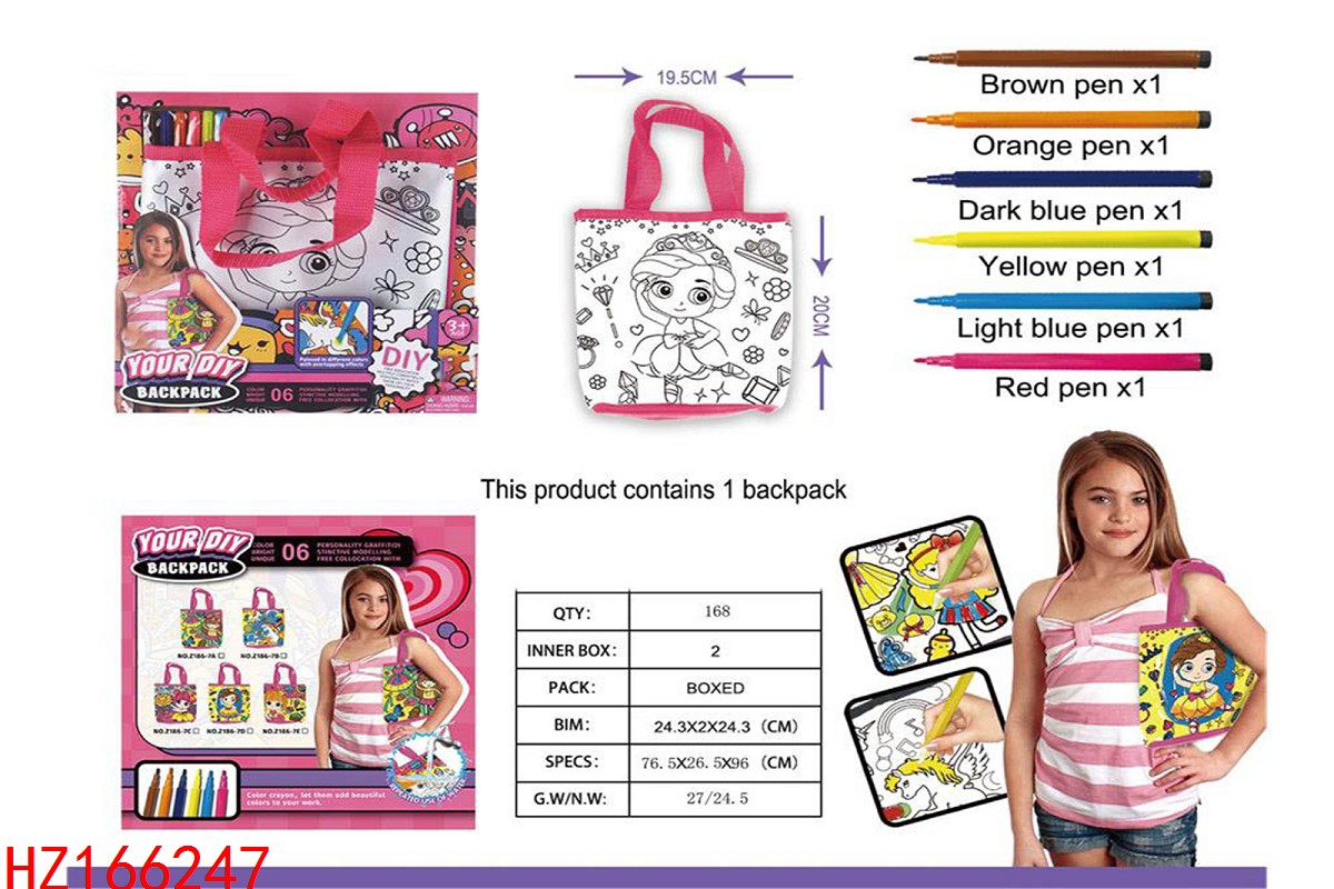 Fashion jewelry graffiti washable children's satchel (six pens) Reusable